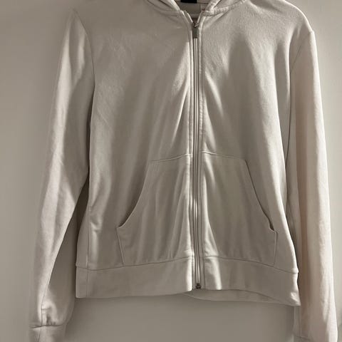 Gina Tricot hettejakke i svart farge, myk kvalitet str L. Lang i modellen med hette og glidelås foran. I god stand men mangler tråd i hetten, derav lav pris. Det gjør ingenting for funksjonen av jakken.