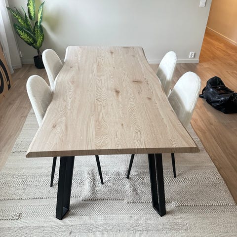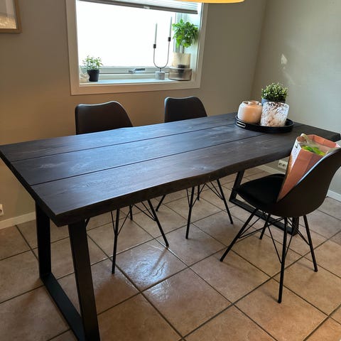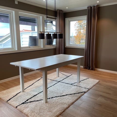 1 år gammel spisebord fra Ellos home. Ingen bruksmerker. Kun brukt et par ganger v større selskap. Mål: 180x90. Må hentes i Halden og bæres ned 2 etasjer.