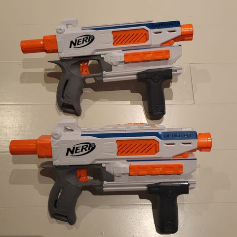 Nerf Ultra select leketøysvåpen i hvit og oransje farge. Inkluderer magasiner for skudd. Skyter godt og hurtig, veldig kule. Er lite brukt. Pris pr stk.