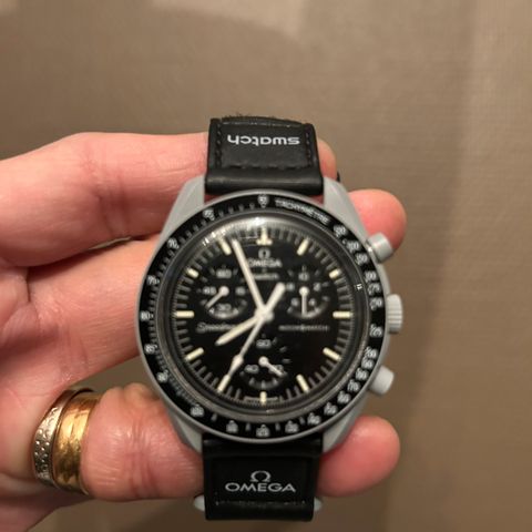 Swatch Omega Mission to Mercury inkludert ekstra gummi reim. Har original kvittering og alle ekstra «pins» til reimene. Det er noen bruks riper på glasset men ingen ting dypt.