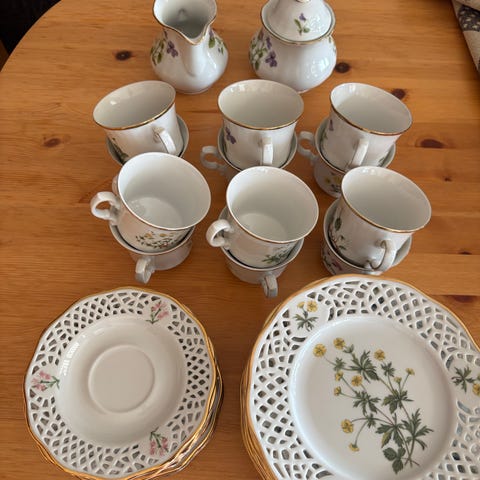 Nordiske Bær fruktskåler i porselen med dekorativt hullmønster og flerfarget bærmotiv. Settet inkluderer flere skåler i, egnet for servering av frukt og andre småretter.