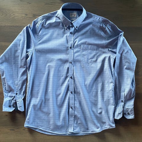 Lite og pent brukt herreskjorte fra GANT. Blårutete stoff i 100% bomull. Nyvasket, men ikke strøket.
