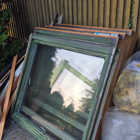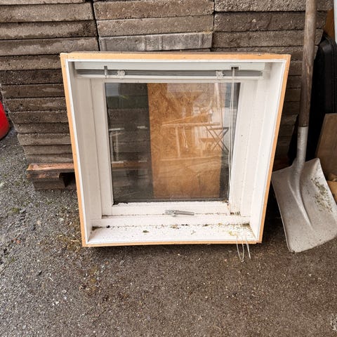 Vindu fra ca 2019 gis bort da det har fått påført en fuktskade ved lagring. Er ellers et fint og bra vindu. Må hentes snarest og innen nyttår