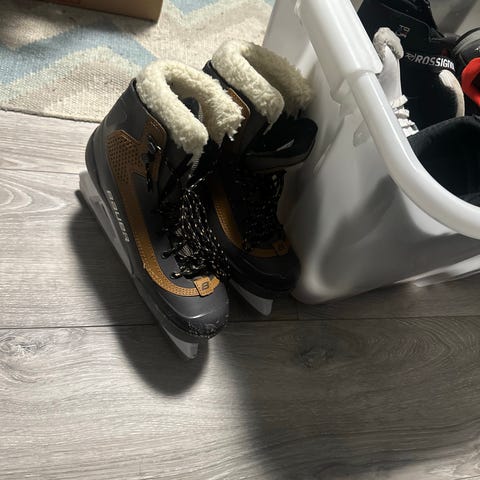 Godt brukte Bauer Vapor X500 hockeyskøyter. Har noen merker, men virker bra. Ok tykkelse igjen på skøytestål. Skøytene er nyslipt.