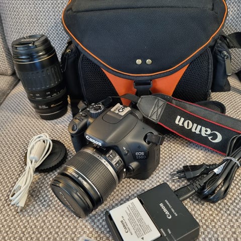 Canon EOS 550D med batteri og lader + minnekort 8GB+ kameradeksel og Kameraveske.