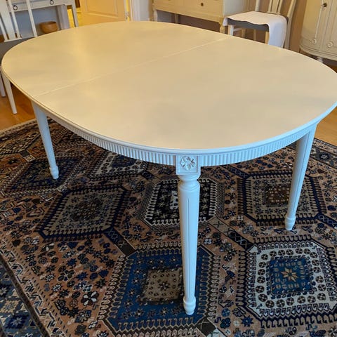 Gustaviansk spisebord med 8 stoler (sete høyde 47 cm ish).