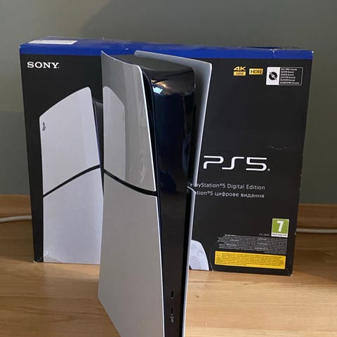 Sony DualSense trådløs kontroller i lilla farge. Designet for bruk med PlayStation 5 konsollen. Kontrolleren har ergonomisk form og innebygde funksjoner som adaptiv avtrekker og haptisk tilbakemelding. Den er i ganske god form, har ikke stick drift og ingen synlige skader