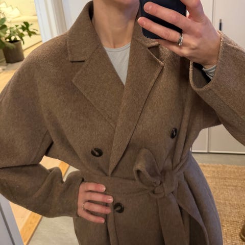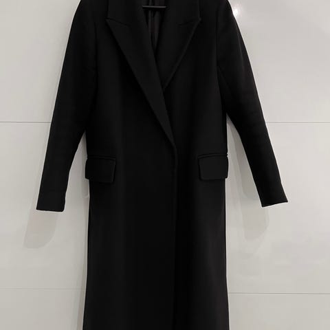 Pent brukt klassisk kort kåpe / jakke fra COS i str 36 selges. Mørk blå, 80 % ull. Nypris var rundt 1600kr.
