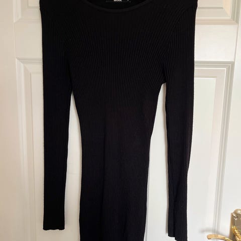 Vero Moda kjole i størrelse XS, fargen svart, laget av polyester. Kjolen har korte ermer med blondedetaljer og et belte i livet.