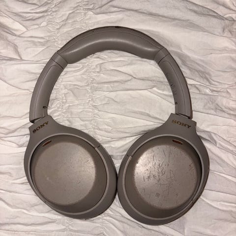 Sony hodetelefoner med over-ear design. Produktet inneholder elektroniske komponenter og ledninger, som vist på bildene.