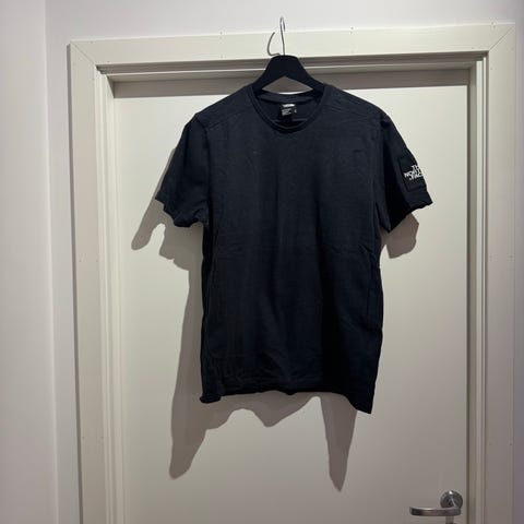 The North Face T-skjorte for herre i størrelse M, med logo på bryst og lite logo på baksiden.