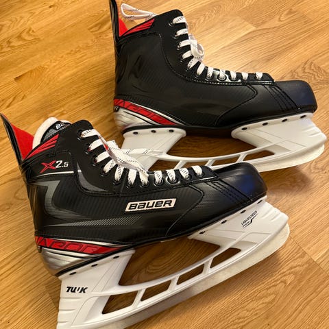 Skater barneskøyter for ishockey i størrelse 32. Skøytene har svart og sølvfarget materiale med hvite lisser og hvit såle. Egnet for barn som spiller ishockey. Som nye 250kr. Tlf 90675398