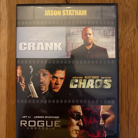 Crank actionfilm på DVD med Jason Statham og Amy Smart. Filmen har en spilletid på 1 time og 24 minutter og er utgitt i 2006. Inneholder actionfylte scener og følger handlingen til hovedkarakteren spilt av Jason Statham.