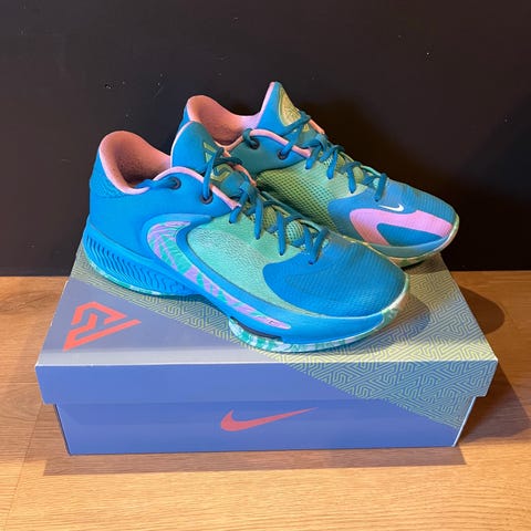 Helt nye basketballsko med lappen på, bestilt online dirkete fra Nike stores. Julegaven som ble for liten! Koster 1449 hos Nike: https://www.nike.com/no/en/t/giannis-freak-7-shapeshift-basketball-shoes-GG4JATtO