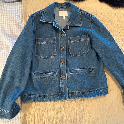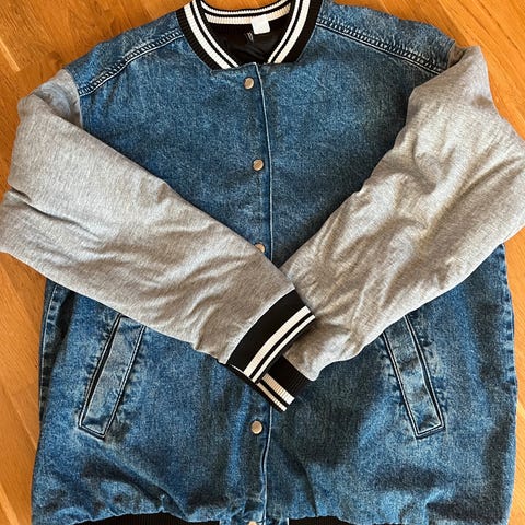 H&M Denim jakke i blå farge, størrelse S. Jakken er laget av denim materiale og tilhører kategorien andre jakker for kvinner.