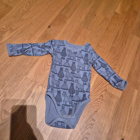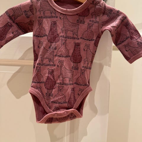 Støvrosa body med dyremotiv. Helt ny! Ull og viskose fra bambus.