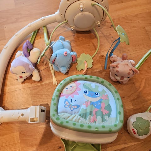 Denne kan henges på barnesengen og spiller musikk samtidig som den lager fint stjernemønster.