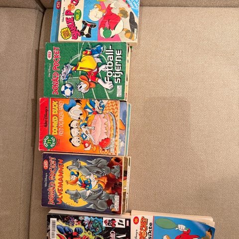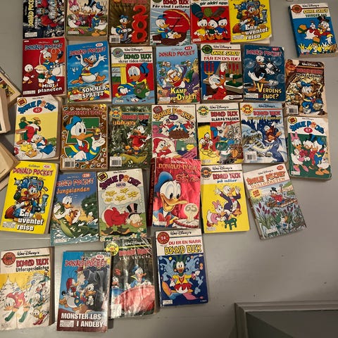 Samling av Donald Pocket tegneserier med ulike titler og historier. Inneholder flere utgaver med klassiske karakterer som Donald Duck og hans venner. Passer for samlere og lesere av tegneserier.