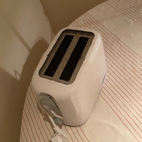Brødrister gis bort, fungerer fint, plass til to skiver samtidig. Byttes ut fordi vi fikk større til jul. Ukjent alder, mye tyder på at den ble kjøpt på Clas Ohlson.