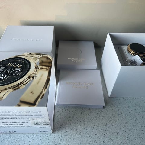 Michael Kors Access smartklokke for dame i roségullfarge. Klokken har en digital skjerm og leveres med lader, bruksanvisning og annet utstyr. Klokken følger med en app.