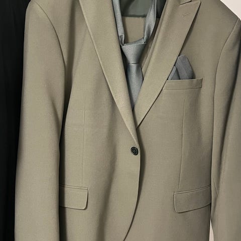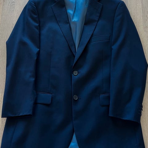Jakke er i str. 62 R, bukse i 44/30