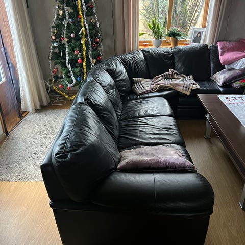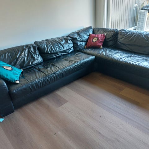 Pent brukt rødbrun skinn sofa