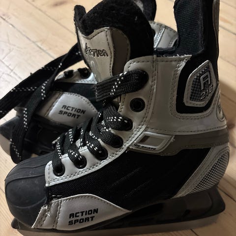 Pro Flyers ishockeyskøyter for barn, størrelse 33. Skøytene har svart farge med hvite lisser og hvite skøyteblader. Egnet for ishockey.