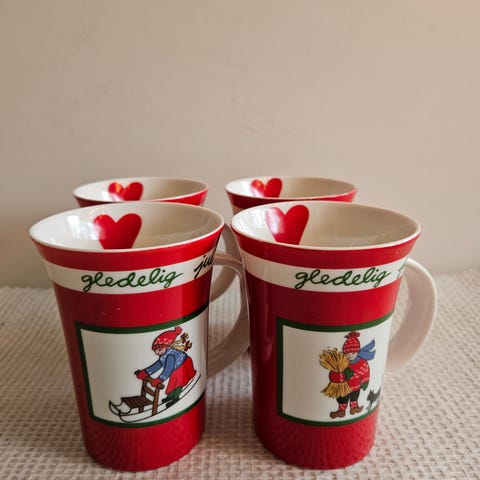 Selger en kopp / krus med julemotiv, med påskriften : «Gledelig jul»