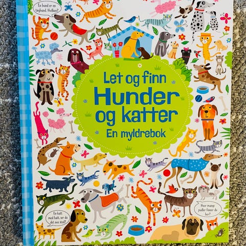 Let og finn Hund og katter Myldrebok med illustrasjoner av hunder og katter i ulike situasjoner. Boken inneholder fargerike og detaljerte sider hvor man kan lete etter og finne forskjellige dyr. Passer til barn som liker å utforske og finne objekter i bilder.