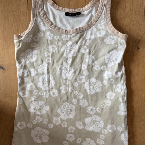 Lindex tanktopp i størrelse S, laget av bomull. Toppens farge er grå, og den er designet for kvinner. Passer til ulike anledninger og kan kombineres med flere typer klær. Toppen er lang til meg på 180. Er du kortere kan den kanskje også brukes som kjole