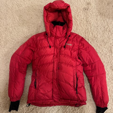 Pent brukt lett dunjakke, litt krøllete etter lagring, men ingen skader/hull/flekker.