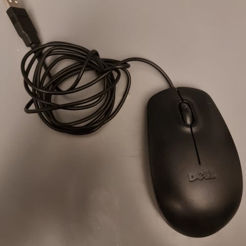 En enkel og funksjonell Dell-mus designet for bruk med datamaskiner som krever kablet tilkobling. Musen fungerer som den skal og er testet. Passer fint til PC, laptop, skolebruk, kontor eller som ekstra mus hjemme.
