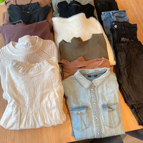 1 bukse fra Gina tricot, den har noen merker- se bilder, går nok an å fjerne med flekkfjerner (derav ok pris)