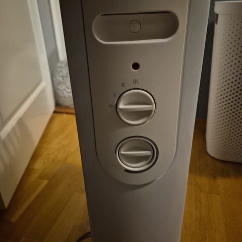 Elektrisk varmeovn i hvit farge med justerbare innstillinger og viftefunksjon. Kompakt design egnet for oppvarming av mindre rom. Kjøpt på Rusta aldri brukt god som ny