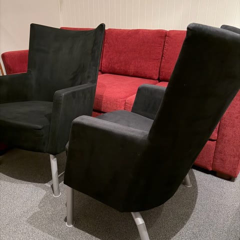2stk Apollo lenestol i sort skinn fra Kinnarps. Snurremekanisme med automatisk retur.