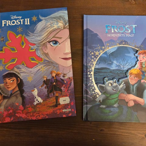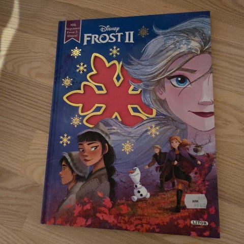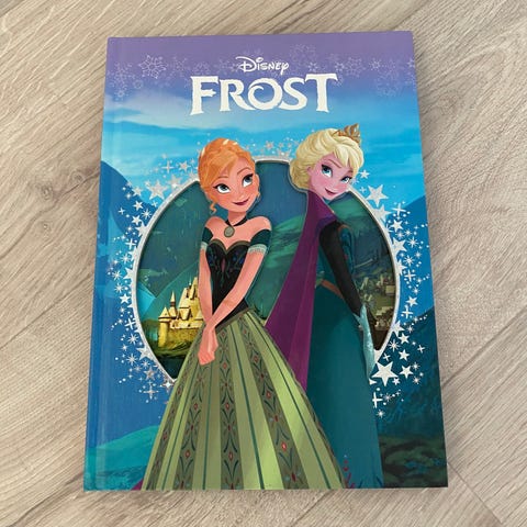 Disney Frost barnebok med illustrasjoner. Boken inneholder historier om karakterene Elsa, Anna og Olaf fra Frost-universet. Passer for barn som liker eventyr og Disney-figurer.
