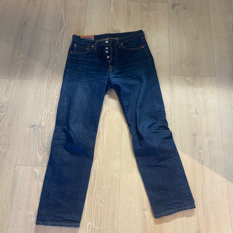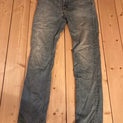 Mørk blå acne jeans, str W:31 L:32. Føles mindre. Smal modell, funker som Unisex også.