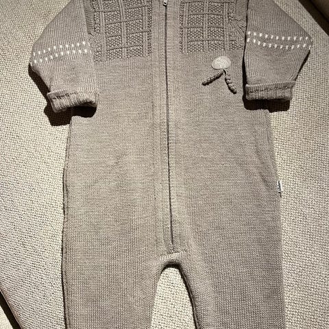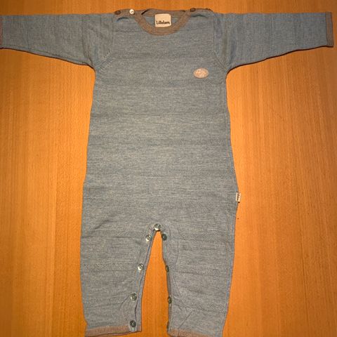 Tynn lillelam ulldress i str 80. Blå, med knapper mellom beina.