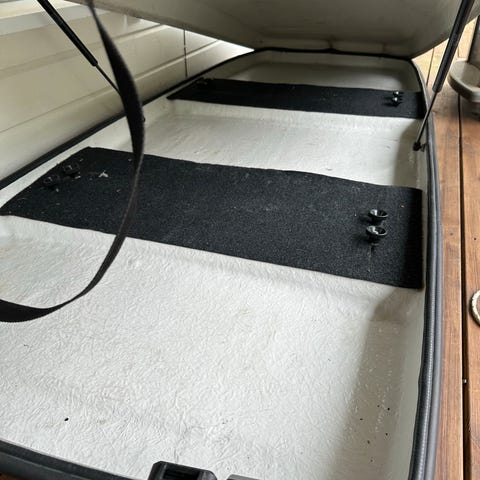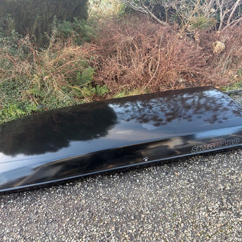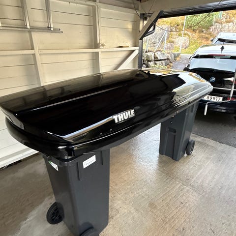 Boksen er brukt på sommartid, og bilen har vore parkert i garasje hos oss. Det er noko falming i lakken på toppen, så ein polering vil gjere den blank og fin igjen.
