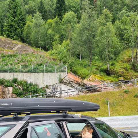 Takboks i glassfiber med lav profil. Bygger ca. 25 cm i høgda frå takbøylene.