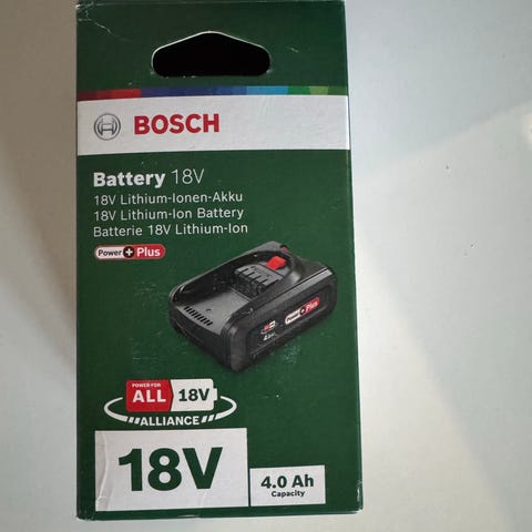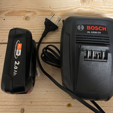Bosch batteri, ladder og batteri holder til vegg. 1 stk 3 Ah og 3 stk 5 Ah