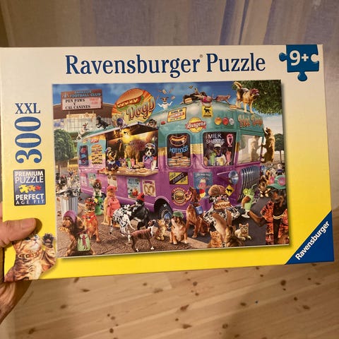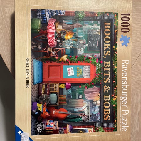 Med på kjøpet kommer ett påbegynt Ravensburger Puzzle med 3000 biter, hvor vi bare kan håpe at alle puslebrikkene følger med…