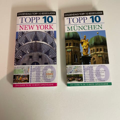 Gyldendals Topp 10 og et par DK Eyewitness Travel guider selges. Fantastiske reiseguider på tur.