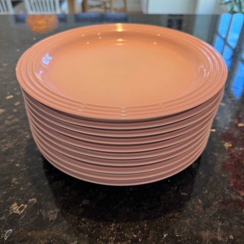 2 stk kvadratiske ildfaste former på 20 og 13cm fre le creuset. Fargen er Shell pink (utgått i denne modellen). Nypris 1159,- selges samlet for 500,-. Noen små bruksmerker som muligens kan vaskes av, men ingen skår/sprekker eller lignende. Kan sendes :)