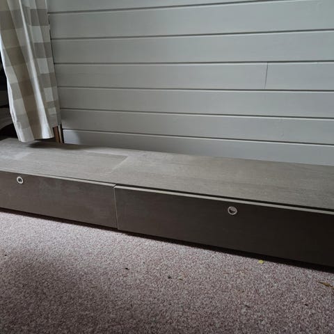 skuffene var teipet igjen og teipen har etterlatt enkelte merker, usikker på om det kan skrubbes bort.