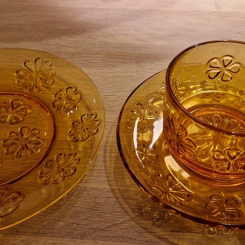 Helle fra Figgjo Flint. Totalt 9 stk dype tallerkener, 5 store og 4 små. En stor og en liten har skår og krakelering., se bilder. Litt merker i midten på de store. Selges samlet.