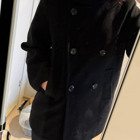 SAND Copenhagen fuskepels i størrelse 34 for dame. Jakken er beige og laget av polyester. Den har en dobbeltradet knappestolpe og en myk, pelslignende tekstur.