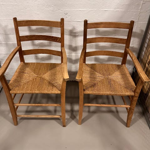 Flotte orginale design stoler etter Marcel Breuer. Cesca stoler selges. Hele og fine i rotting og med armlene. Stolene er merket på undersiden av armlenet . Prisen er for begge. Stolene kan hentes i Hønefoss eller sendes mot frakttillegg.