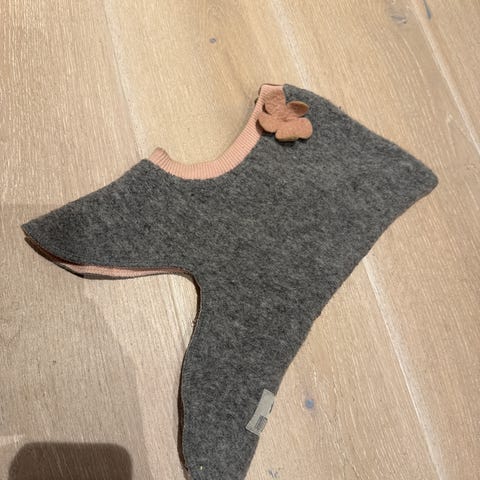 Huttelihut barnelue i merinoull størrelse ca 56 cm grå, rund ansikt 50 cm.