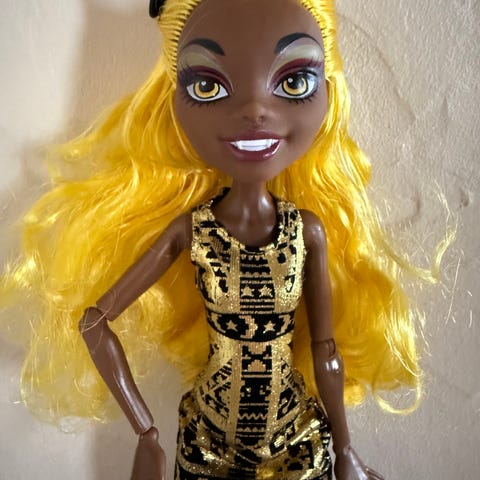 Usikker om den hører til Monster High eller Bratz . Selges for 250 kr . Kan sendes med post nord for 70 kr eller fiks ferdig . Eller kan hentes etter avtale .